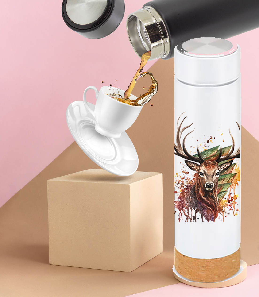 Termo acero inoxidable doble capa con base de corcho. 450 ML, personalizable con nombre, si lo quiere sin personalización ignore la casilla de nombre
